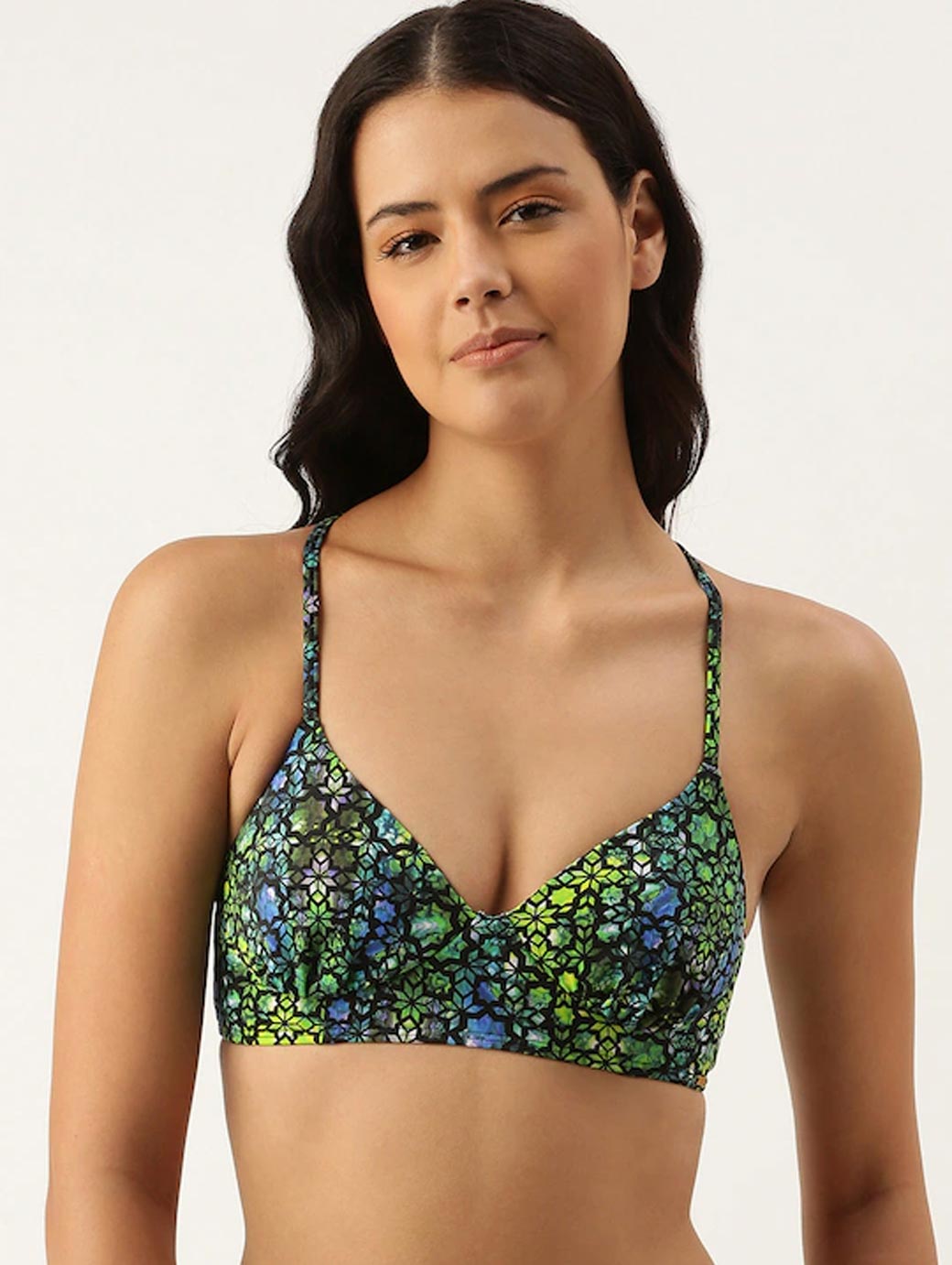 Multicolored Print Padded Wired Racerback Slip-On Swim Bikini Top