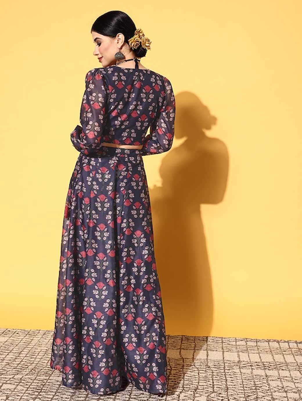 Navy Blue Printed Ready to Wear Lehenga Choli
