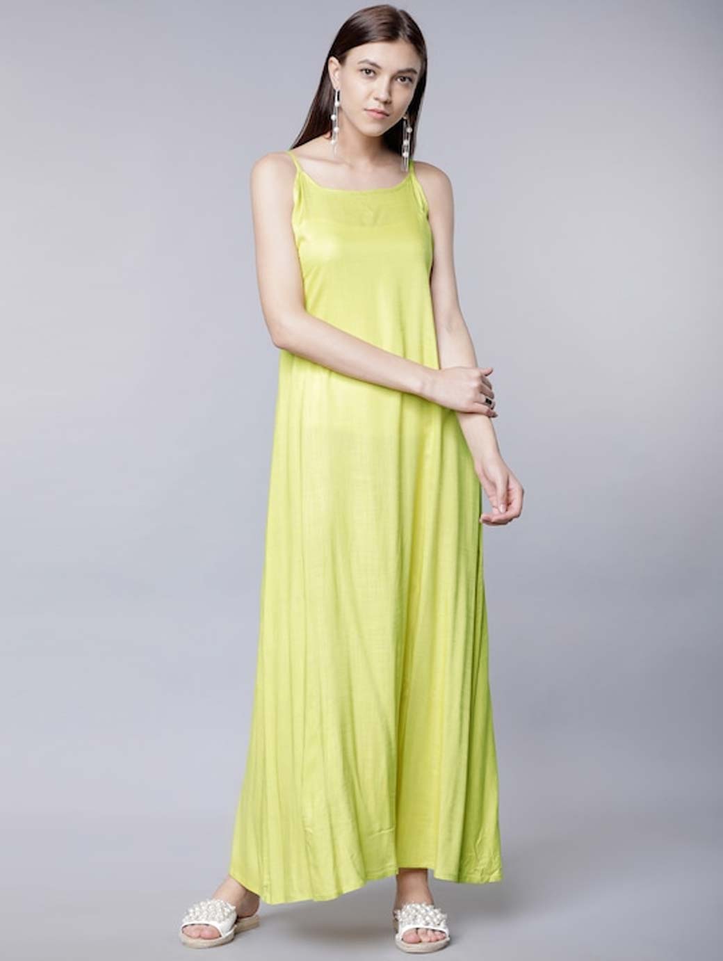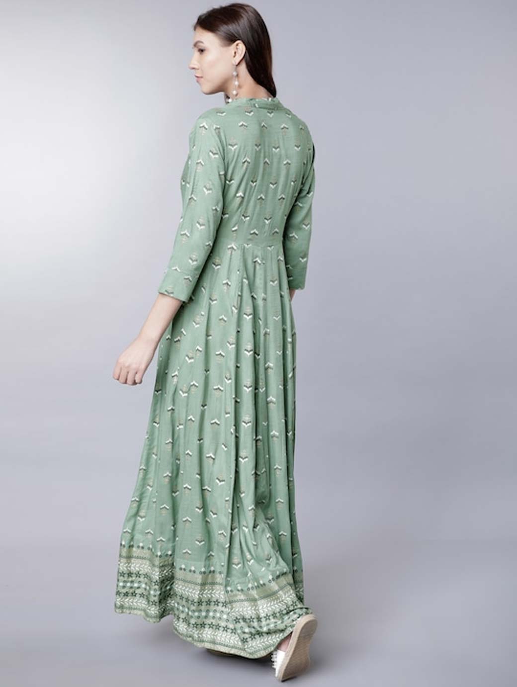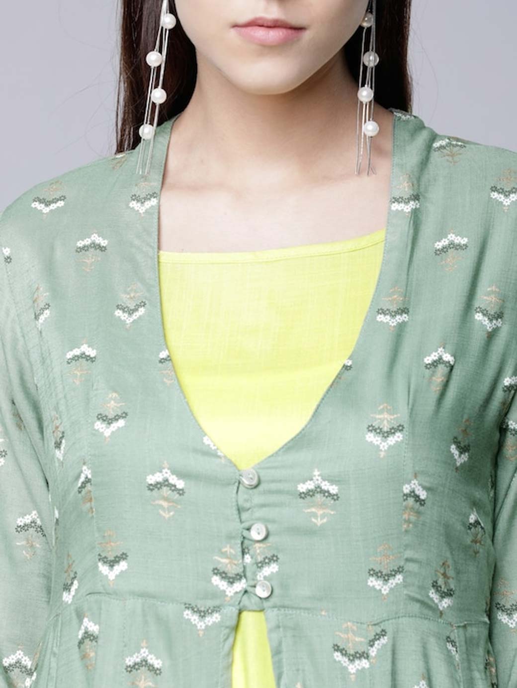 Women Green Solid Layered Maxi Dress with Front Open Jacket