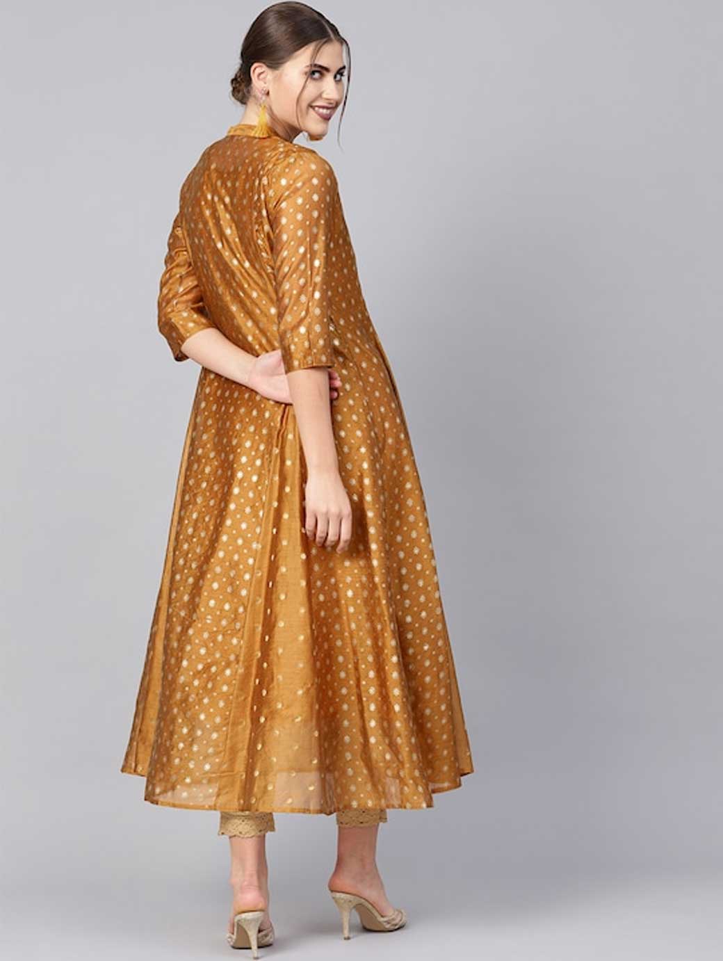 Women Mustard Brown & Golden Printed Anarkali Layered Kurta