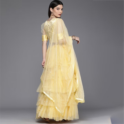 Beige Semi-Stitched Lehenga & Unstitched Blouse With Dupatta