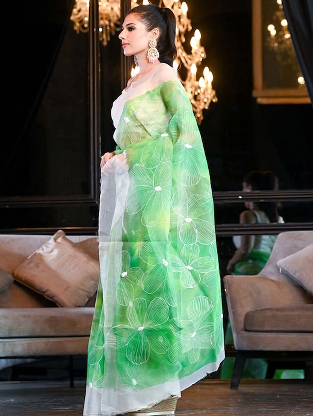 Green and yellow saree