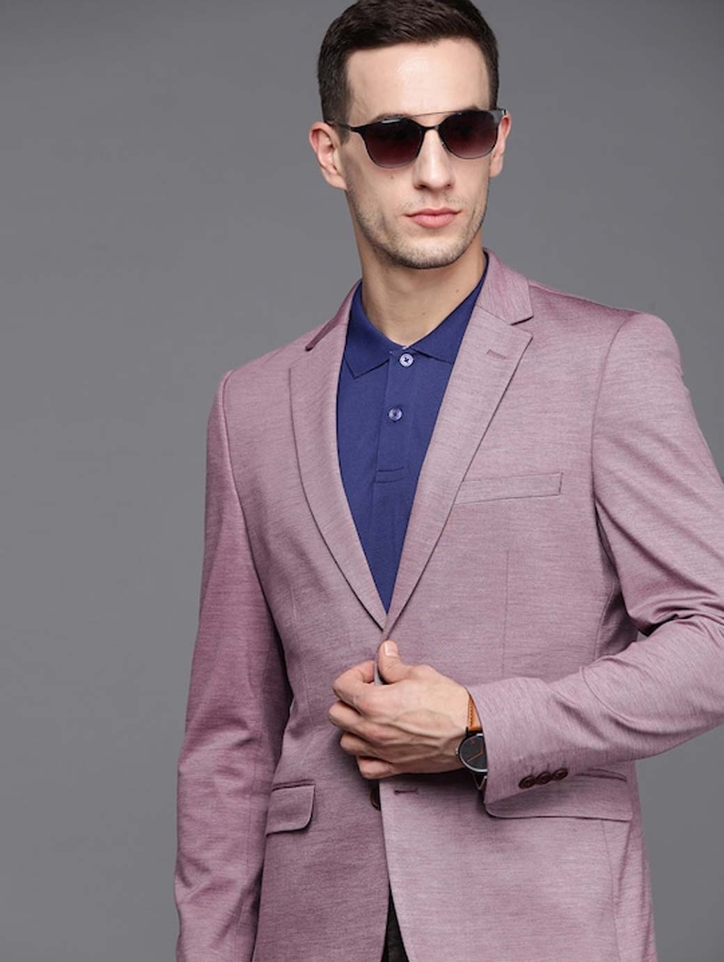 Men Purple Melange Effect Slim Fit Formal Blazer