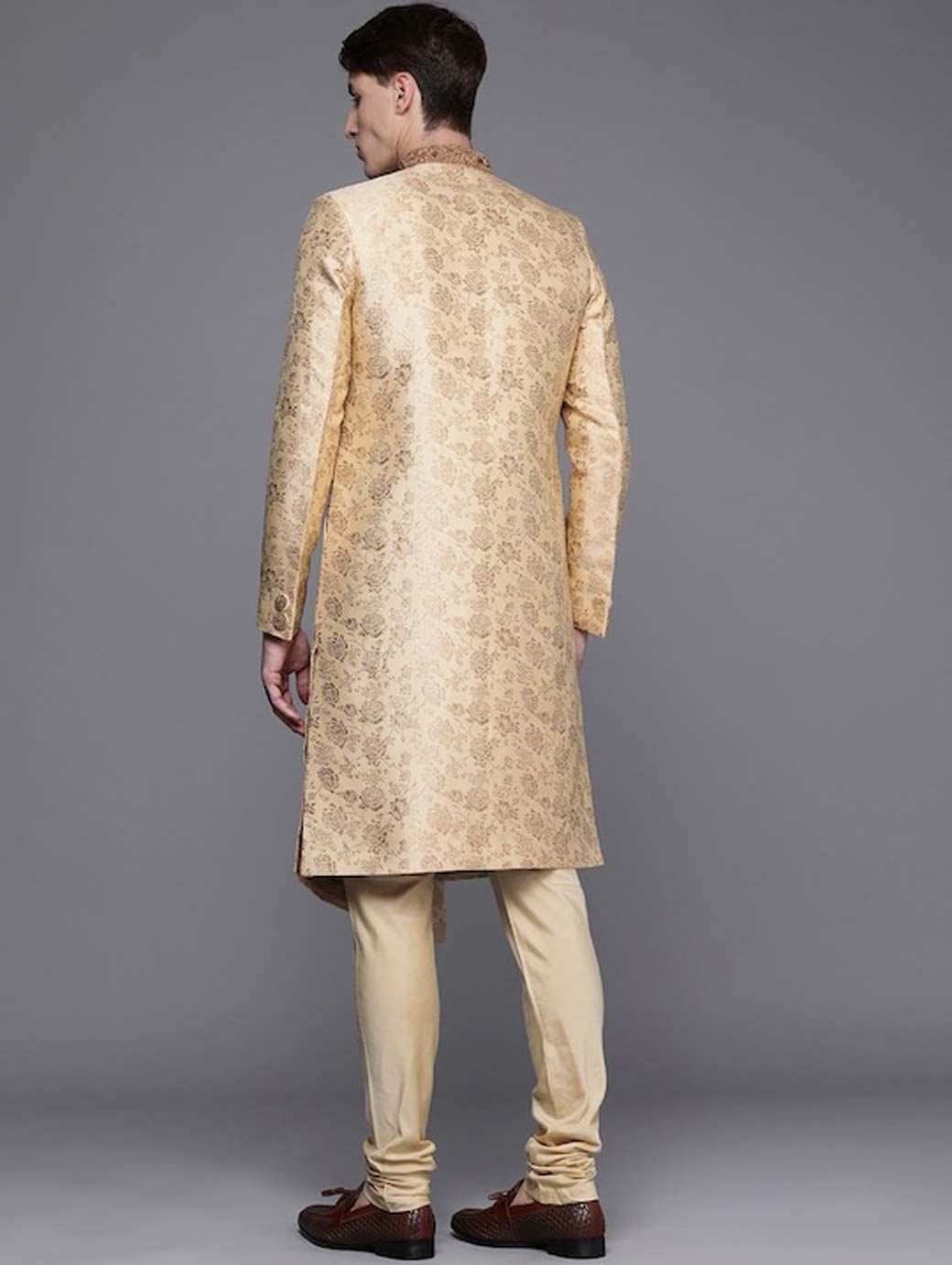 Men Ethnic Motifs Printed Raw Silk Kurta with Pyjamas & Nehru Jacket