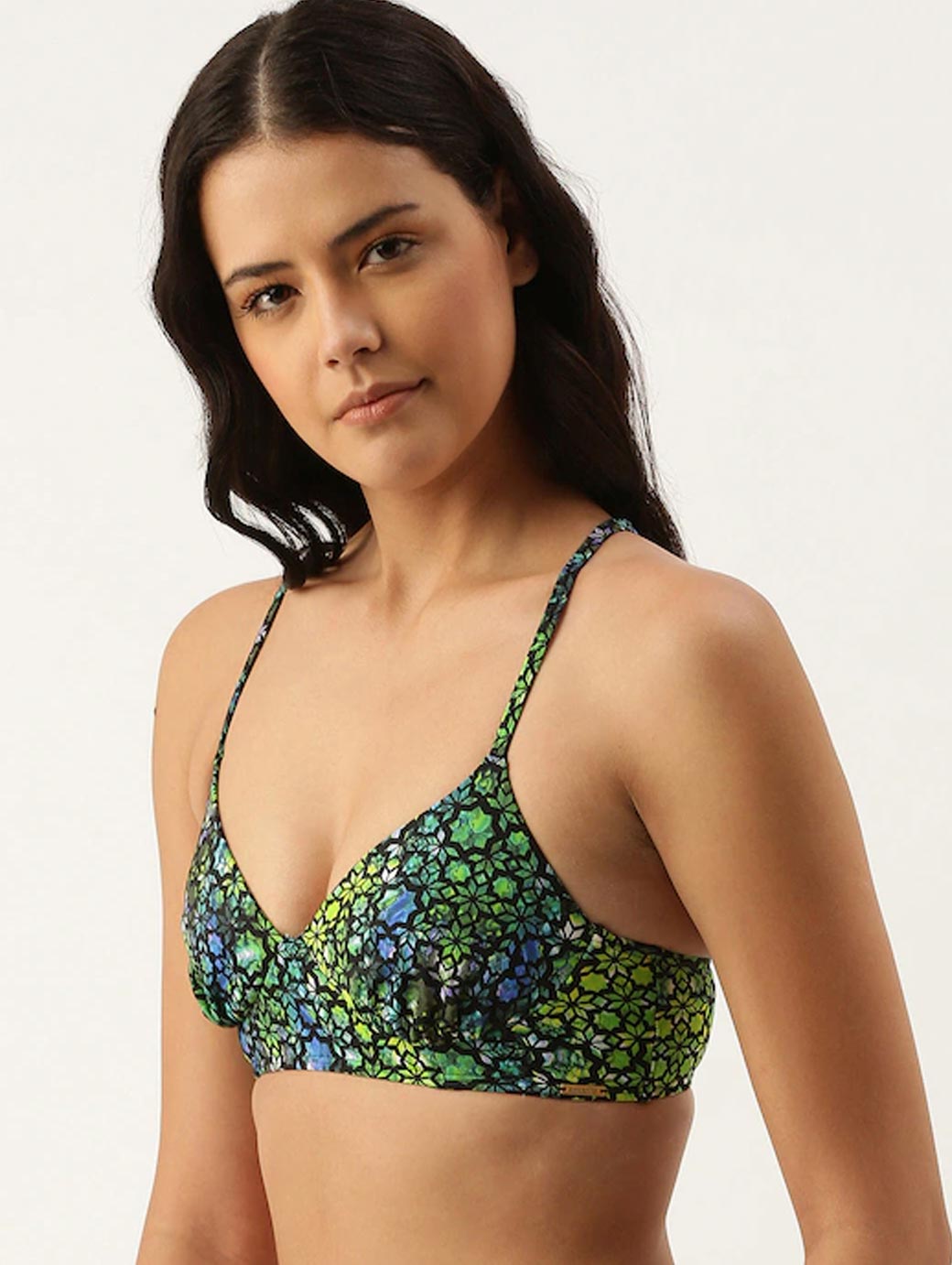 Multicolored Print Padded Wired Racerback Slip-On Swim Bikini Top